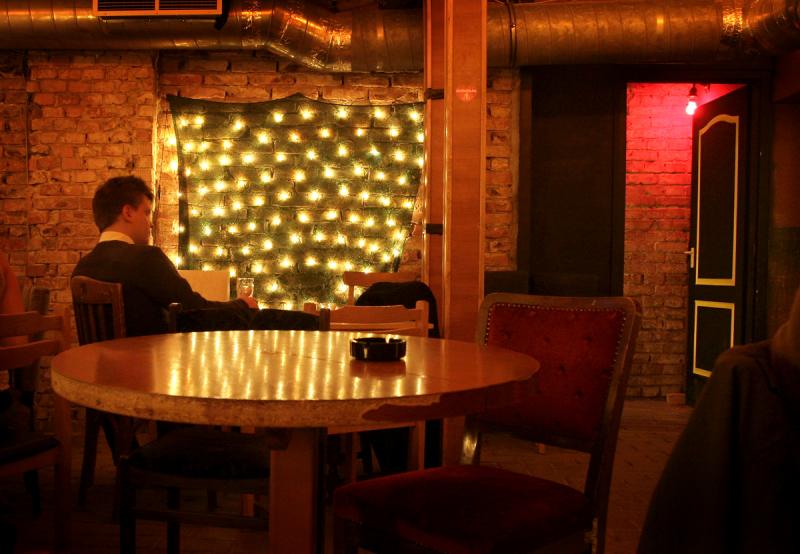A Lámpás maga is tudja, hogy nem a nyár az ő szezonja; nincs is nyitva olyankor, csak ősszel, amikor a hideg eljöttével az ember szívesebben húzódik vissza, gubózik be és veszi körül magát füsttel-sörrel. No meg régi bútorokkal, könyvekkel a polcon - erről jut eszembe: van olyan, aki ilyen helyeken olvasgatja a kitett kötetekető